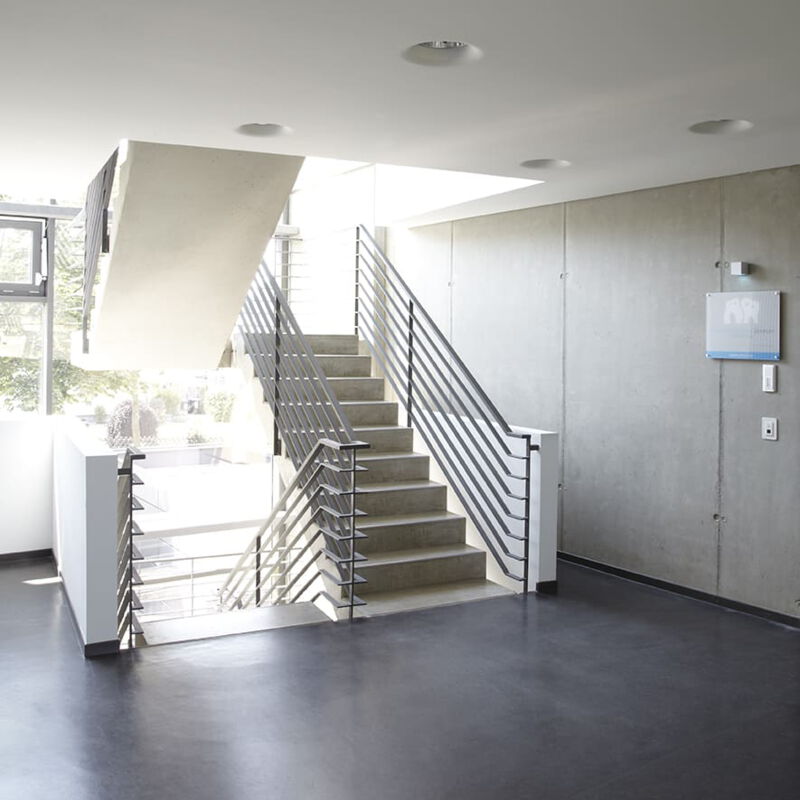Für den Neubau eines zweigeschossigen Zentrums für Zahnmedizin in Paderborn übernahm unser Team die gesamte bauliche und innenarchitektonische Planung und deren Ausführung. Dabei wurde die Erschließung eines möglichen späteren Erweiterungsbaus bereits bei der Planung berücksichtigt, den wir fünf Jahre nach Eröffnung des Ärztehauses umsetzten. Das moderne Gebäude besitzt ein offenes Treppenhaus, das durch zeitlose Sichtbetonflächen und einem frei stehenden Aufzugschacht besticht und von beiden anliegenden Straßen betreten werden kann. Zudem spiegelt sich die außergewöhnliche Farb- und Materialgestaltung der Außenfassade mit unterschiedlichen Schwerpunkten in den Praxis- und Nutzflächen wider. Auch bei der innenarchitektonischen Gestaltung und der Auswahl funktionaler und ansprechender Möbel wurde Wert auf ein einheitliches Gesamtkonzept gelegt.